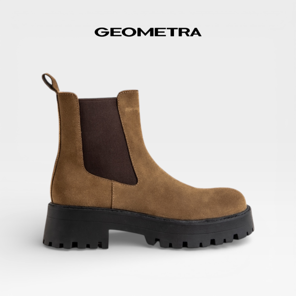 Boot Nữ Chelsea GEOMETRA Desert Wind WB0125 - Giày Boot Nữ mũi tròn đế Chunky, Da bò lộn - Nâu bò